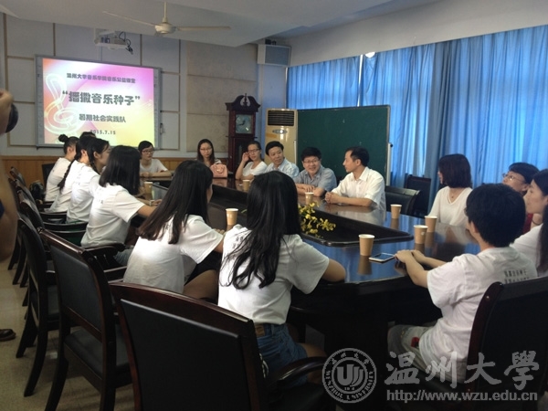 7月15日上午,校党委委员、组织部长方益权教授,在校团委屠霁霞书记陪同下莅临国产成人电影 ,慰问“播撒音乐种子”暑期社会实践队队员。国产成人电影 总支书记刘青松、副院长王文韬、学生科副科长林海红、实践队指导教师严伊娴及全体实践队员参加了座谈会。 会上,实践队长刘伟首先介绍了2015年校重点暑期实践队——“播撒音乐种子”的具体情况。这支队伍由14音教班的20位同学组成。她们将在为期两周的时间里,完成国产成人电影 第三期 “音乐公益课堂”的教学实践活动。本期“音乐公益课堂”较前两期,在实践场所方面有所拓展,除校内场所外,还延伸到了南白象幼儿园。 实践队副队长徐驰谈了她这三天的感受。她说:“我在校外的幼儿园实践,第一天孩子们并不怎么理我们,第二天下午开始,孩子们明显喜欢上我们了,我们有了成就感。两天的实践,使我们认识到,只要自己给小孩子们做好表率,自然会有好的示范效应。如,上课时不能拿手机,用餐时要吃干净等等细节。” 座谈中王文韬副院长向方委员一行简单介绍了音乐公益课堂的情况。他说:“音乐公益课堂2013年11月由刘青松书记策划、发起。之后在国产成人电影 学生科、教学科的大力协助下,音乐公益课堂已经举办了三期,培训了77位音乐公益讲师,先后接收了温州大学教职工子女268人次。音乐公益课堂作为展示学生综合专业技能的实践平台,着眼于学生职业体验与创业能力的训练。” 听了师生的汇报后,方委员风趣地说:“每次来国产成人电影 类似艺术朝圣,会添加一些艺术的细胞”。他说:“公益音乐课堂是实践育人的有效载体。国产成人电影 在组织实践团队时首先考虑到与所学专业结合,进行有效的角色体验,从而达到职业认知的目的,这非常可取。实践队员们与孩子在一起,无形中培养了自己的社会责任感。相信通过这样的专业性社会实践,各位队员的综合素养会得到很大的提升。”方委员在充分肯定音乐公益课堂的同时,感叹道:“音乐公益课堂拉近了温州大学与教职工的关系。从某种意义讲,这样的公益活动,提升了温大教职工对温州大学、对国产成人电影 的真切情感。” 最后,方益权委员、校团委屠霁霞书记为实践队员发放了防暑药品及其它慰问品。方委员关切地嘱咐实践队员:“暑期炎热,一定要照顾好自己。同时,要像妈妈一样照看好前来培训的每个孩子,尤其是孩子们的安全。你们把音乐播撒给孩子们的同时,更要把爱心留驻心间!”