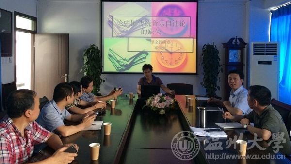理论教研室主办的“天瑞论坛”于2015年6月10日下午在309会议室正式开讲。本次主讲人是邓深海老师,讲座题目为 《论中国传统音乐自律论的缺失》,论坛由教研室主任柏互玖老师主持,理论教研室全体老师及部分学生参加了这次论坛。