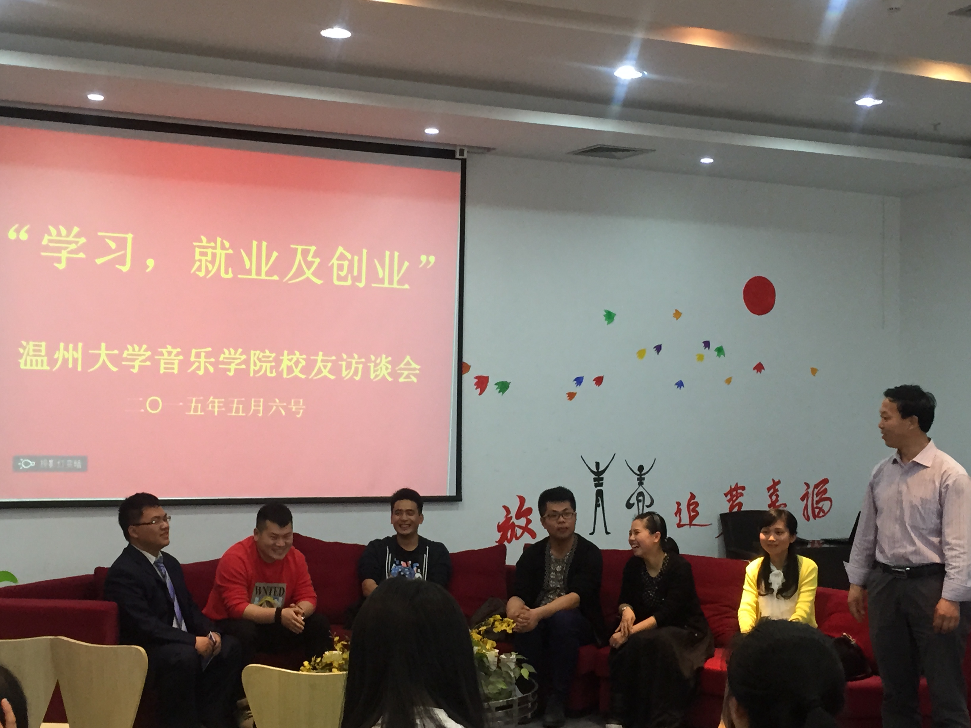 本次校友访谈会邀请到了泉州师范学院教师、毕业于中国艺术研究院的林立策博士、乐清市旧城建设办公室综合科科员兼纪检监察科干事包王凡学长、温州市外国语学校音乐教师吴晓东学姐、瑞安市音律艺校校长钱彬彬学姐以及国产成人电影
