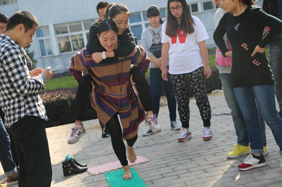 活动开始,第一个游戏为经典的赤脚背人过指压板。此游戏虽然道具简单朴素,但其杀伤力却出奇的巨大。经过抽签两两匹配之后,轮番上阵的同学们无一不被指压板的残暴,队友的体重压迫所折服。