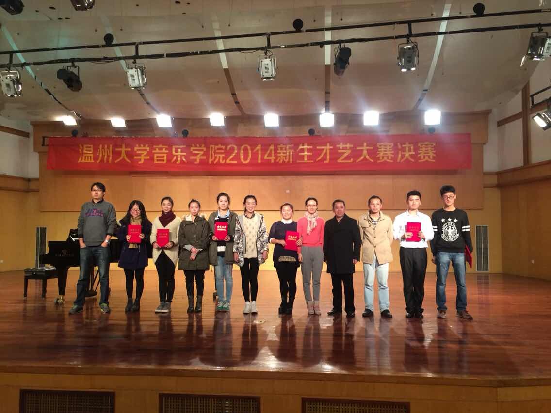 2014年“新声报到”新生才艺大赛决赛在北校天瑞音乐厅拉开帷幕。理论教研室王志毅老师和柏互玖老师、钢琴教研室柳耶老师、声乐教研室许天鸣老师担任此次比赛的评委 。