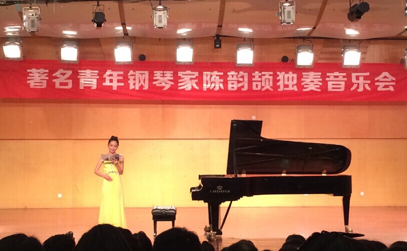 2014年11月19日晚,月光如水,星光灿烂,在温州大学北校区天瑞音乐厅,迎来了一场音乐盛宴。主持人如梦为我们简单的介绍了一下陈韵劼老师。陈老师是当代中国最优秀的青年钢琴家之一,执教于中央国产成人电影