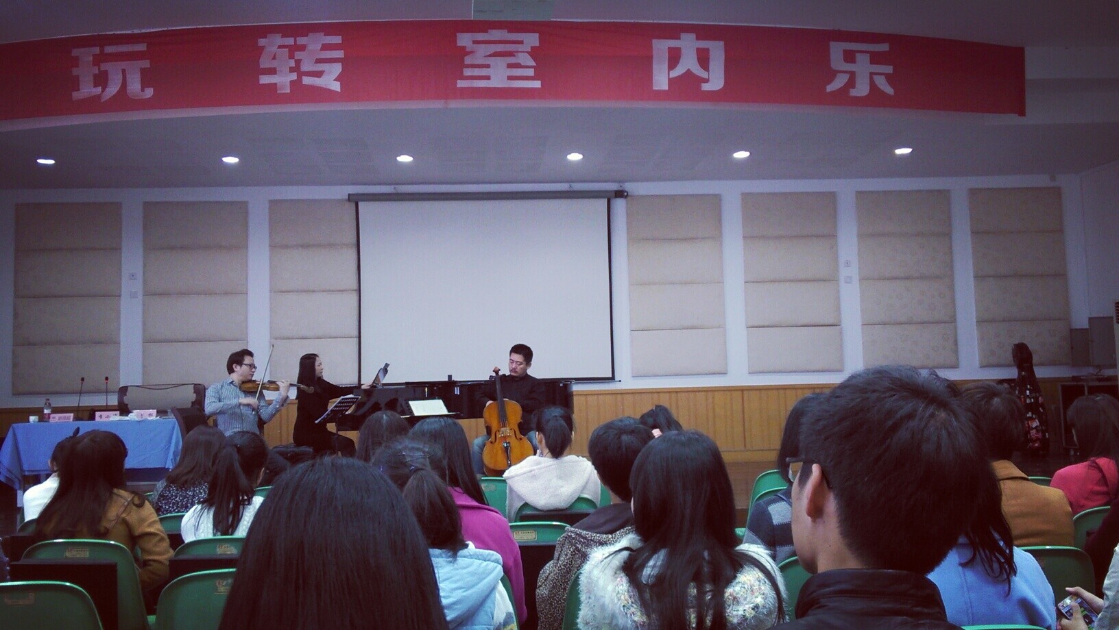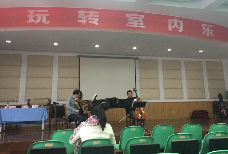 音乐楼学术报告厅201正式展开玩转室内乐的三重奏音乐沙龙。温州大学音乐院器乐方向学生以及爱好者都前来观赏。