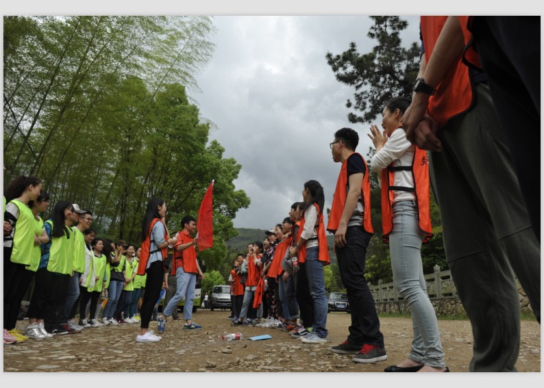 4月27日上午9点整,学生干部到达了楠溪江。在总培训师的号令下,我们进行了一项简单的素拓任务,目的旨在让大家熟悉培训的基本内容及彼此熟悉队友。接着我们分成了2个素质拓展队伍,并分别配备至少一名培训师进行了一系列的户外培训。
