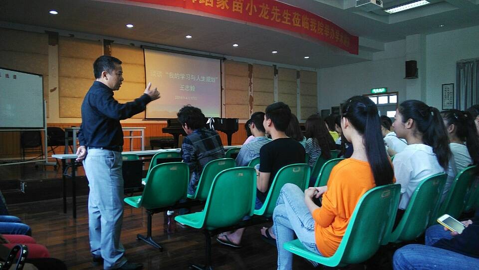 首先,王老师问起大家对未来有什么规划,并请同学发言,同学们都发表了自己的想法,有的说要好好学习,有的说要当一名电影工作者。在听了同学们的发言后,老师笑呵呵的说,没错,只有对未来规划的人,才能有更多的机会展现自己。之后,老师向大家讲起了他自己教育儿子的故事,他总是理解儿子的想法,总会让儿子自己自由发挥,自己去寻求对未知事物的好奇。同学们不时为此开心一笑。