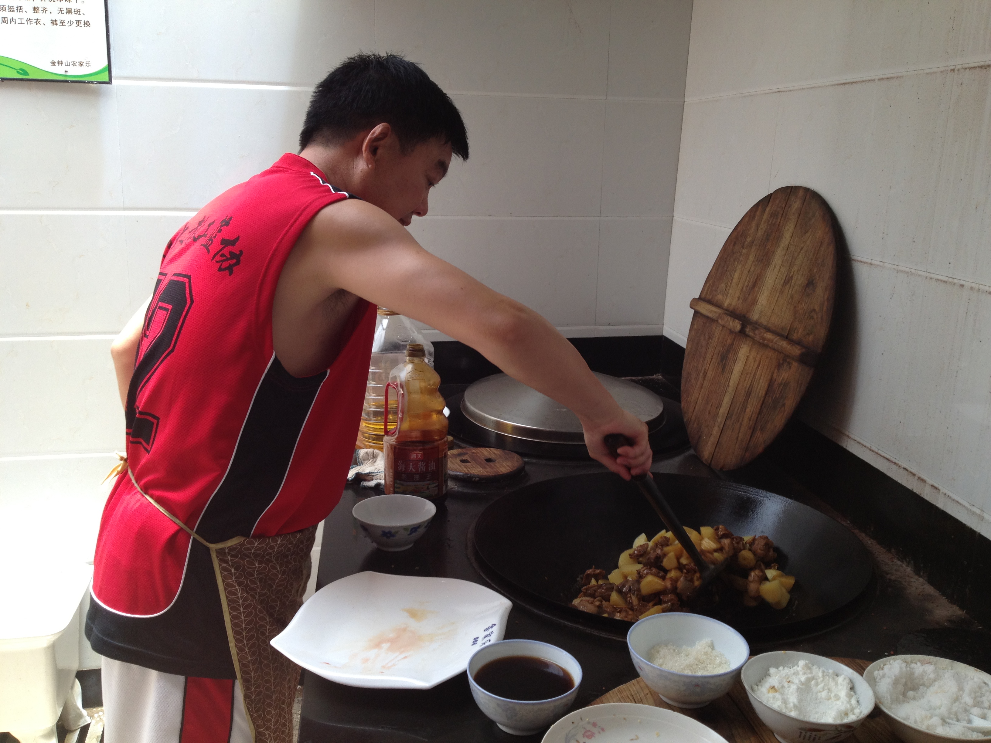 另一组就和刘老师开始了制作午餐,老师负责掌厨,同学负责洗柴、烧锅。听了同学的心得:本以为烧锅很简单,原来这也是一个技术活,开始怎么也烧不着,烧着了又总是灭。烧了一会,火终于烧起来了,我就在想,这里的人天天烧锅,那么热、那么辛苦。不过,从这次的经历我也总结了,万事总是开头难,只要把开始做好、以后就会顺利,要先苦后甜,我们总是要经历点什么、努力了,才会成功。还有做事情一定要讲究方法,不能蛮干。实践让我们成长。 (蒋娟丽)