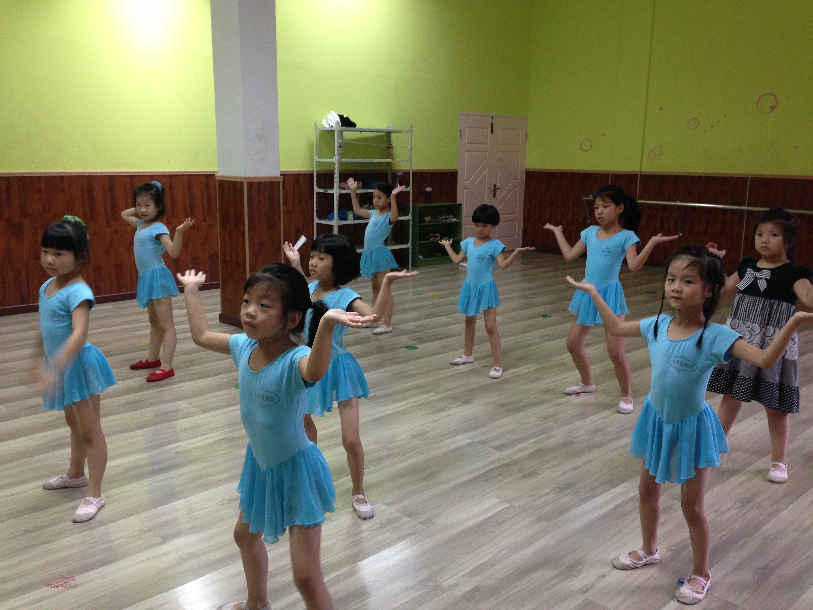 这个暑假,青果果艺术学校的小朋友们会有一次汇报演出,他们即将在8月底登上舞台,展示他们的学习成果。在我们实践队实践的这10天里,我们一直帮小朋友们排练新节目,从什么都没有,到第一个队形,到第一组主题动作,再到一个小舞蹈基本形成,每个阶段都让我们每一位实践队的成员学习到很多。比如各种舞蹈造型的编创,如何变换队形,还有对学生们情绪的掌控等十分有用的技能。