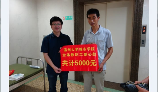 转交给殷舒父亲城市学院全体教职工5000元善款