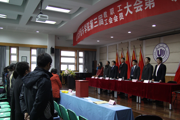 大会在雄壮庄严的国歌中开幕。首先召开大会预备会,预备会由学院党总支书记刘青松主持。首先学院工会主席刘玉亭作大会筹备工作情况说明,接着审议产生了大会主席团成员,并通过了大会主要议程。