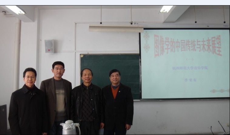 李荣有教授专长研究汉画乐舞图像学,主持完成国际级课题1项,省部级课题5项,在权威期刊和国际国内学术会议发表学术论文50余篇,创立我国第一个中国传统乐舞艺术图像学研究专业方向。本次讲座,李教授从中国图像的文化渊源“河图”、“洛书”、“八卦”说起,认为图像在学术研究中也占有重要的地位,并且为师生展示了多幅有关音乐的汉代石像的图片。讲座的最后,陈其射教授发言,评价了图像学在音乐研究中的作用,认为音乐研究者接触图像学会更好的有助于学术研究。