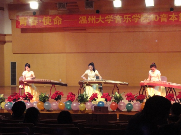 晚会分悦、乐、跃三个篇章,节目精彩纷呈,有群诵、男女对唱、四首连弹、钢琴独奏、古筝三重奏等。开篇的群诵《誓言》表现了10音本班同学积极向上,热爱祖国;晚会在一曲《相亲相爱的一家人》中落下帷幕。文/涂晶晶