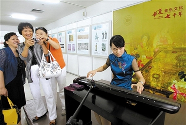 本次华夏音乐文化七千年图片展共展115块展板, 350多幅图片,其中相当部分图片是近年来出土的文物,具有相当高的审美、研究和资料价值。展览内容分为原始乐舞、钟鼓礼乐、竽瑟相和、歌舞伎乐、戏曲散乐以及声腔弦索等6个篇章,涉及远古时期的音乐传说、中古时期的燕乐和近古时期的器乐,集中展现了华夏儿女对音乐美的独特理解,生动表达了各族人民对美好生活的坚定追求。市图书馆展览活动结束后,将到各县市图书馆、大中小学、温州消防支队及相关基层社区巡展,历时一个半月,期间举办座谈会、知识竞赛、民乐展演等活动,为温州市民了解华夏音乐文化、提高艺术素养、开拓认知视野搭建了平台,进一步提高了对本土音乐文化普查、收集、研究与保护工作重要性与紧迫性的认识,大力营造“本土文化人人保护、文化成果全民共享”的良好社会氛围。