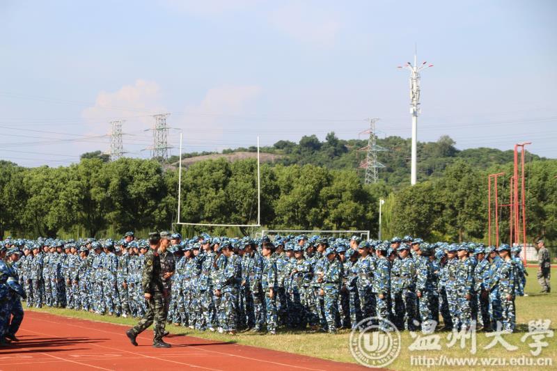 2018年9月16日上午八点三十分,温州大学2018级新生军训开营仪式于南校区体育场顺利开幕,同学们都以饱满的精神迎接期待已久的军训。参加本次新生开营仪式的还有学校领导、军训团领导、全体军训学生及带队教官。