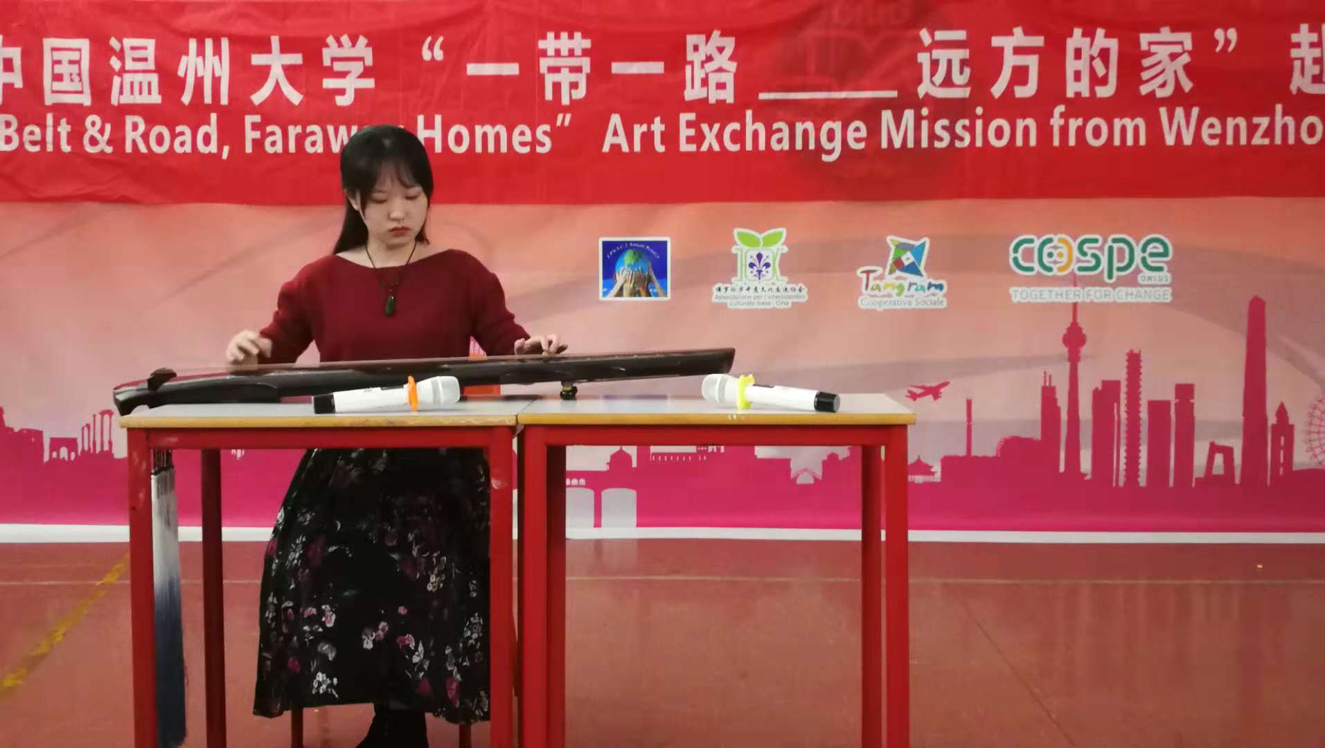 2018年10月26日,温州大学“一带一路——远方的家”欧洲艺术交流代表团走进佛罗伦萨华文学校,与华校师生及来自佛罗伦萨政府、社区各界人士150多人欢聚一堂,带来了一场中华民族音乐的饕餮盛宴,与意大利侨民一起重温同根同源的故土文化,体味心贴心情恋情的中华情怀,传承中华音乐,复原故土牵挂,共筑侨民精神家园。(以下是现场演出的图片)