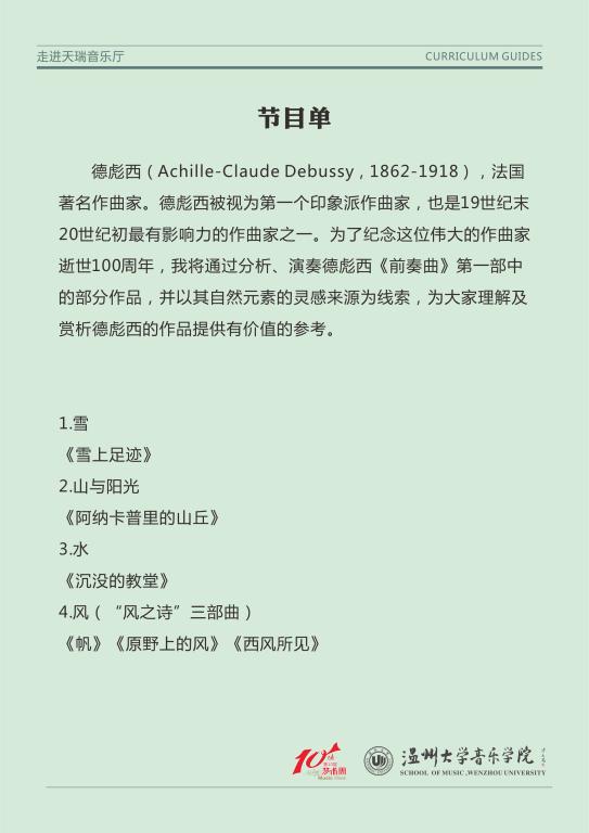 国产成人电影 留美钢琴演奏博士、艺术指导博士陈露雯副教授,从印象派说开去,结合绘画、文学、音乐等姊妹艺术,为师生诠释、演奏了德彪西的“雪上足迹”“阳光”“沉没的教堂”“帆”“原野上的风”有等多首经典前奏曲,以纪念这位作曲家。