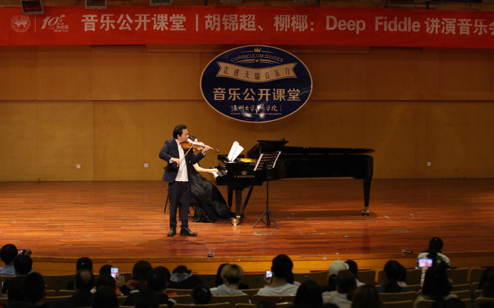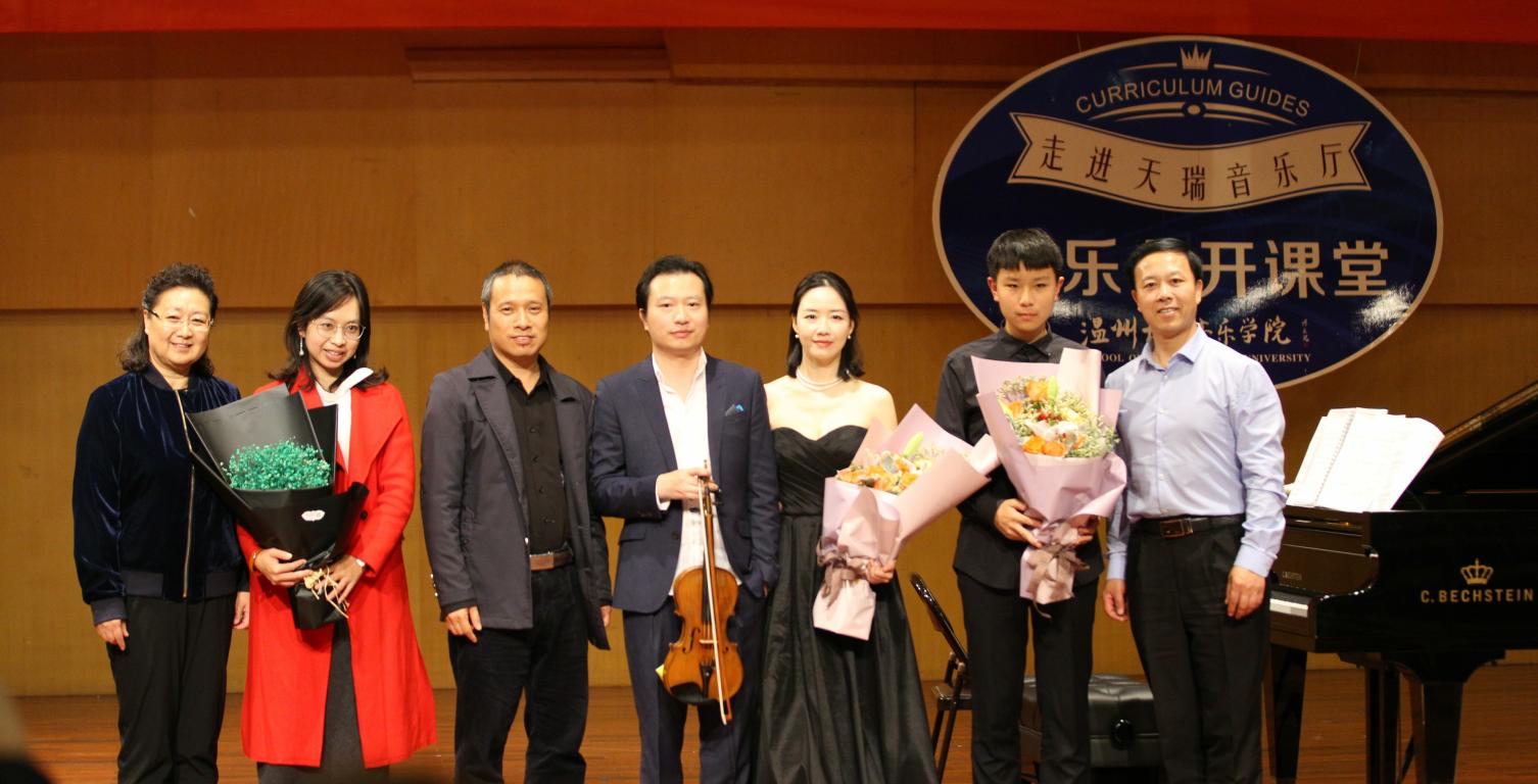 胡锦超、柳椰老师的“音乐公开课堂”讲演音乐会,在天瑞音乐厅举行。温州大学督导曲文燕教授,学院党总支方建敏书记、副院长王文韬等观看了音乐会。
