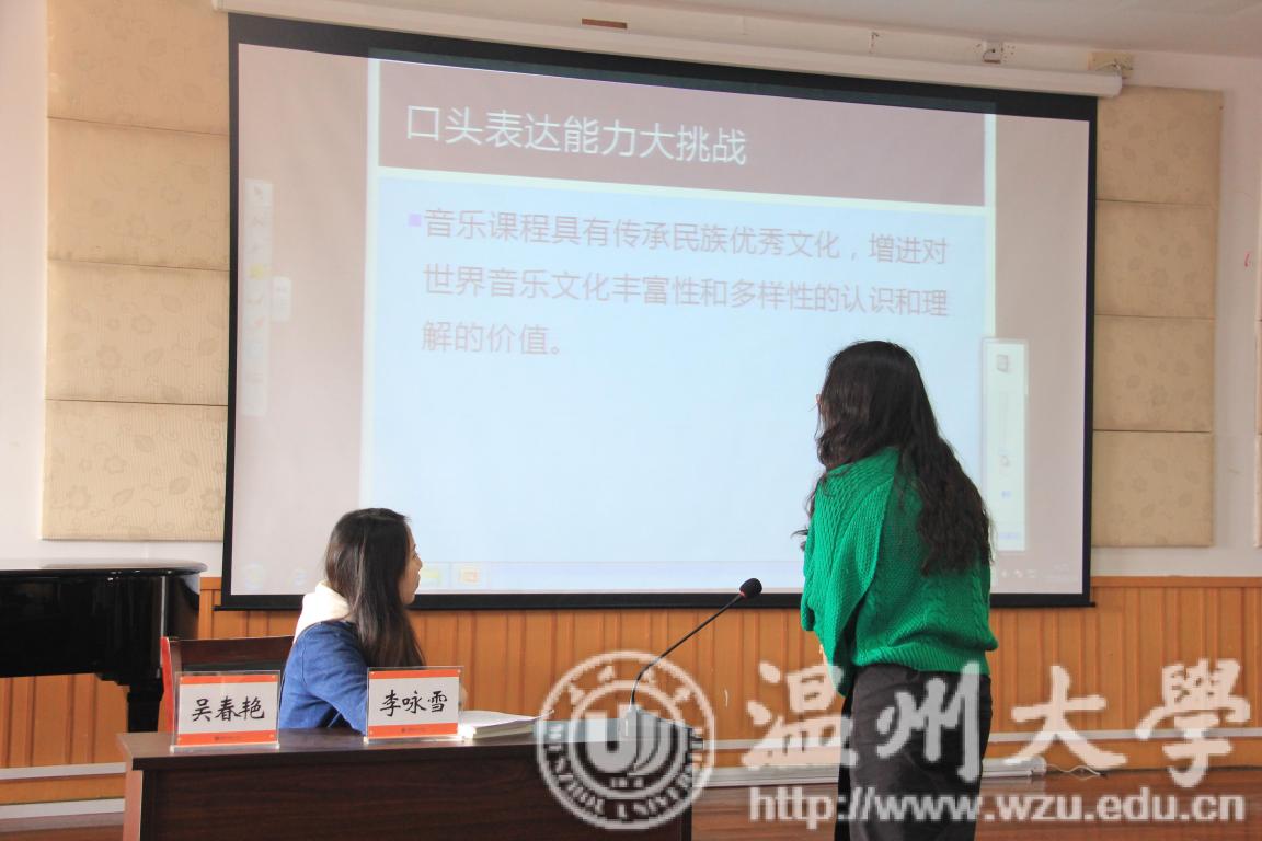 3月26日上午,由温州市道尔顿小学李咏雪老师主讲的音乐名师课堂《分条析理 娓娓道来—音乐学科面试策略解析》在音乐楼201报告厅举行。教学副院长王文韬、实习指导老师李葳以及教学科相关人员出席了讲座,卓越师资培育中心主任吴春艳主持、16级、17级、18级全体学生参与学习。
