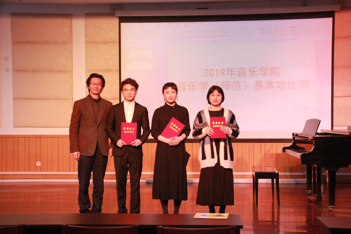 首先,由主持人为大家介绍了本次比赛到场的评委老师们,本次比赛的评委老师们分别来自为声乐教研组、钢琴教研组和器乐教研组等。第一场次比赛内容大致分歌唱、伴奏、自弹自唱三个部分,旨在考察同学们的基本功与师范技能。随后,参赛的16级的同学们依次按照其学号顺序展开了比赛。16级的同学们准备的曲子大为大家耳熟能详的歌曲,如《荷花梦》、《春雨蒙蒙下》和《夕阳红》等,婉转的歌调,俏皮的旋律不禁将大家的思绪引入对童年无尽的回味之中。不仅如此,更是有表达绵绵惆怅、对国家命运感到担忧的《长城谣》,参赛同学动情的演唱更是让将歌曲本身的情感发挥的淋漓尽致。本次比赛对16级的同学来说不仅是对个人能力的鉴定,也是对自身的一次新的挑战与突破;而对低年级观摩的同学们来说也是一次很好的预见与借鉴前人经验的机会。之后,第二场次的比赛以合唱与指挥为主,这也是对师范生技能的重要考核项目之一。经过一轮又一轮的竞赛,参赛选手终于迎来了最后一项的考核――器乐,虽然这是针对主项为器乐的同学,但是比赛氛围依然紧张激烈,同学们都展现了各自最佳的精神状态与专业素养。