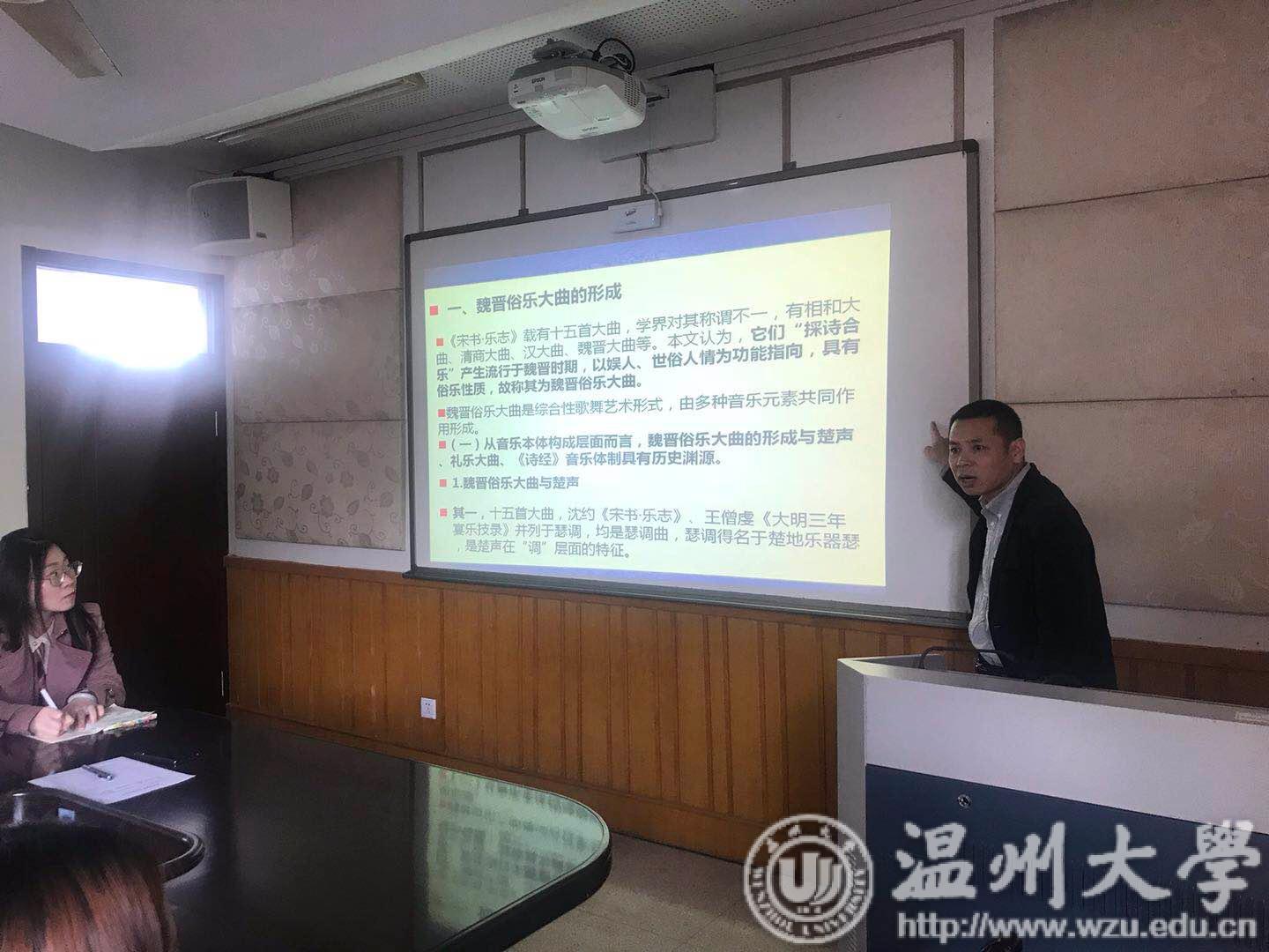 柏互玖博士讲座的题目是《魏晋俗乐大曲的形成与传播》。柏互玖博士首先结合文献记载,从学术史的层面对“魏晋俗乐大曲”的概念称谓进行了界定。接着从两方面阐述魏晋俗乐大曲的形成,一是从音乐本体构成层面而言,魏晋俗乐大曲的形成与楚声、礼乐大曲、《诗经》音乐体制具有历史渊源;二是从音乐创承主体“人”的层面而言,魏晋俗乐大曲的形成与魏氏三祖和乐人关系密切。随后分析指出魏晋俗乐大曲的传播途径存在两种主要方式,一是通过国家制度配给与帝王赏赐,魏晋俗乐大曲从宫廷传播到世家大族府邸;二是因国家战乱或裁减乐人导致的乐人流动,魏晋俗乐大曲从宫廷传播到民间。最后柏互玖博士从历史层面与现实层面总结魏晋俗乐形成的过程以及乐人流动对魏晋俗乐大曲传播的意义。