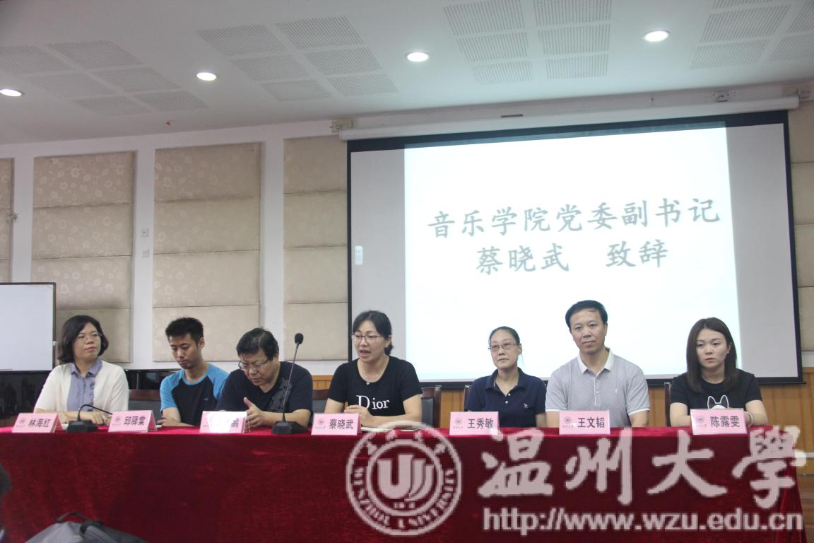党委副书记蔡晓武老师发言,蔡晓武老师的发言中充满了对学生们的关心,主要内容就是学生们的安全问题。其中包括,人身安全、财产安全并教导我们要做好一名代表着"温大精神"的人。蔡晓武老师发言完毕后,由指导老师代表邱驿棠老师发言。如果遇到事情,要在第一时间与带队老师沟通,确保事情问题在第一时间解决。同时,要确保个人人身安全问题。最最重要的,就是一定要做一名合格的老师,为人师表。既然选择了做,就要用心做好!这之后,进行了各个队伍的授旗仪式。最后各个队伍与各自的指导老师进行了合影。