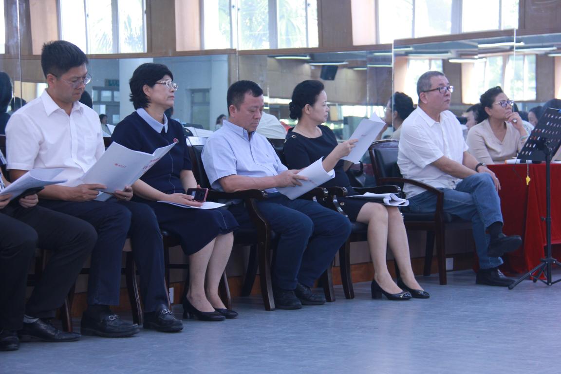 尽管烈日当空,领导们仍然惦记着正在排练中的师生。师生以铿锵有力的掌声欢迎领导的到来并热情地接待了各位领导。紧接着便是歌剧《五星红旗》的排练,《五星红旗》是温州大学对祖国七十华诞献礼,作为立足温州面向全国的歌剧,它在凸显温州元素和培养一支温州歌舞队伍的同时,启动了温州本土资源,学院计划将该剧于今年国庆安排在温州首演。《五星红旗》以艺术的形式讲述国旗设计者曾联松创作设计五星红旗的故事,以小故事讲述大背景,以小切口体现大时代,充分体现了温州人民的家国情怀。该剧主题将围绕曾联松投身革命后发生的一系列事件进行,探索其设计国旗背后的研究历程,作品兼具思想性、文学性和艺术性。艺术指导老师时而悠扬,时而有力坚定的琴声,演员们真情流露的演技和婉转动听的歌声,不由得让人身临其境。随着剧情的发展一步步的推向高潮,领导们不由自主地热泪盈眶。这也是对演员的演唱功力的肯定!