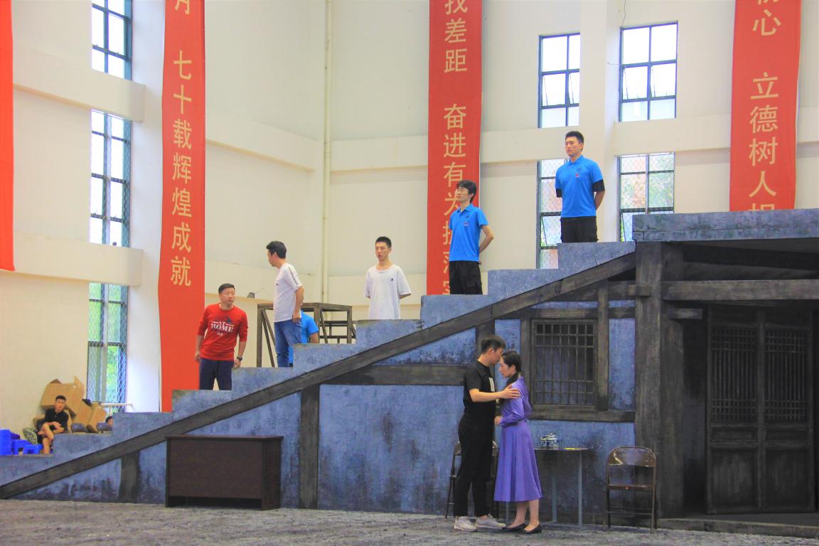 午后的时光总是让人那样溺爱,今天午后的太阳似乎慵懒了一些,躲到了云朵后面酣睡了起来。万事万物都可以懈怠,但是我们的歌剧所有演员、幕后的老师们以及关心这场歌剧的所有领导老师们不会懈怠,始终奋斗在歌剧排练的“一线战场”。所以,在这个没有艳阳的下午,演员们依旧像往常一样流淌着努力、奋斗的汗水。领导老师们为了确保歌剧的幕后工作,甚至亲自披挂上阵,密切关注着每一处幕后工作。相比之前的排练,现在演员们已经对于整部歌剧了解的更加透彻,已经可以非常顺利的讲整部歌剧完整演绎,可以说对于这部歌剧的掌握已经到达了炉火纯青的地步。就在演员们按部就班的进行排练时,我校校领导来到了排练现场慰问我们的歌剧演员。演员们没有因为领导的到来而停止排练,而是继续进行着。领导们十分欣慰的入席并继续欣赏着同学们的表演,直至歌剧结束。