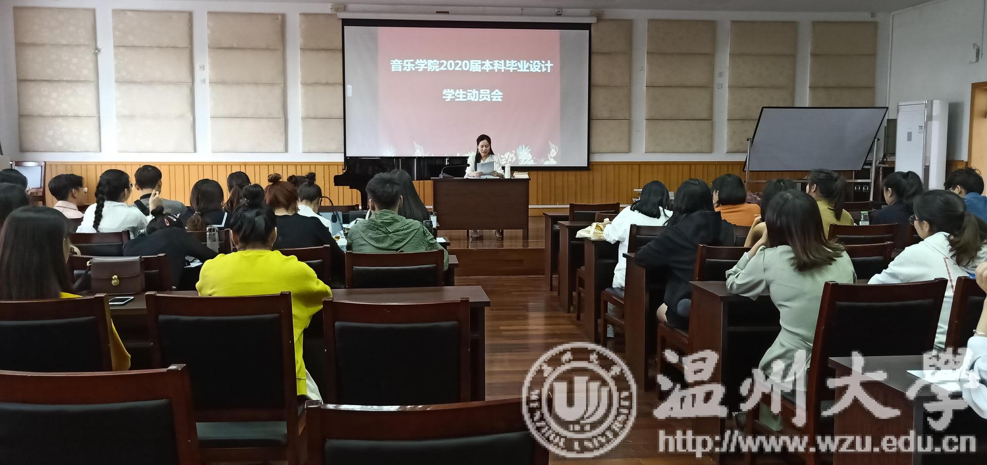 2020届本科毕业设计(论文)工作的正常有序进行。10月16日下午,在音乐楼201举办了本科毕业设计动员会。16级音乐学(师范)本科学生、教学科老师等参加了此次大会,大会由教学副院长蔡军老师主持。