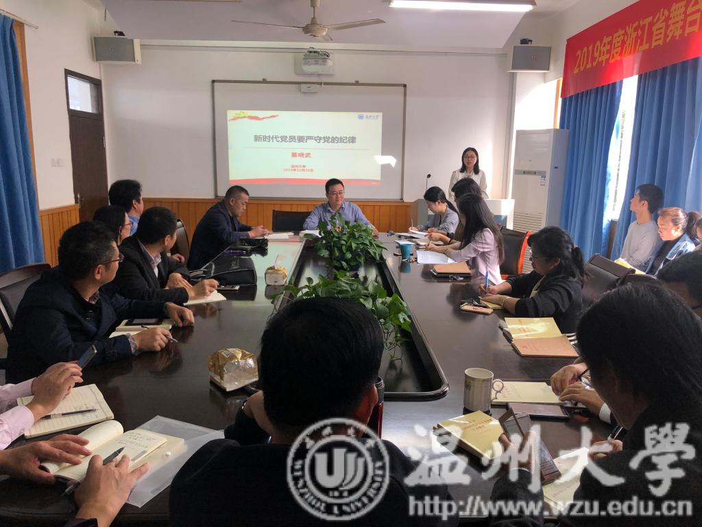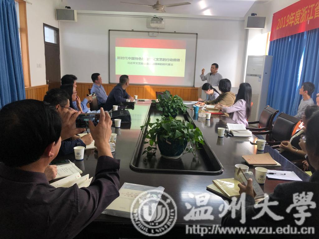 教工第二党支部书记柏互玖带头学习习近平总书记在文艺工作座谈会上的讲话,以《新时代中国特色社会主义文艺的行动纲领:习近平文艺座谈会讲话精神的时代意义》为主题,从实现中华民族伟大复兴需要中华文化繁荣昌盛、创作无愧于时代的优秀作品、坚持以人民为中心的创作导向、中国精神是社会主义文艺的灵魂以及加强和改进党对文艺工作的领导五个方面展开探讨学习。随后,由本研联合学生党支部书记林海红带领全体党员深入学习了三门县城西村八任书记一任接着一任干先进事迹。
