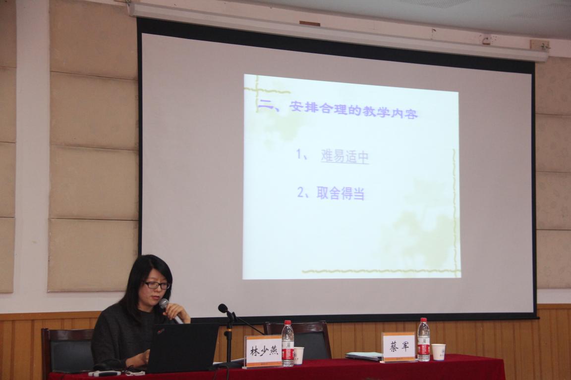 从林少燕老师的讲座中让我们学到了需要切合实际,以学生为中心设计课堂,并要提升各项专业技能,对于教材也需要进行深入挖掘。非常感谢今天林少燕老师为我们带来的讲座。