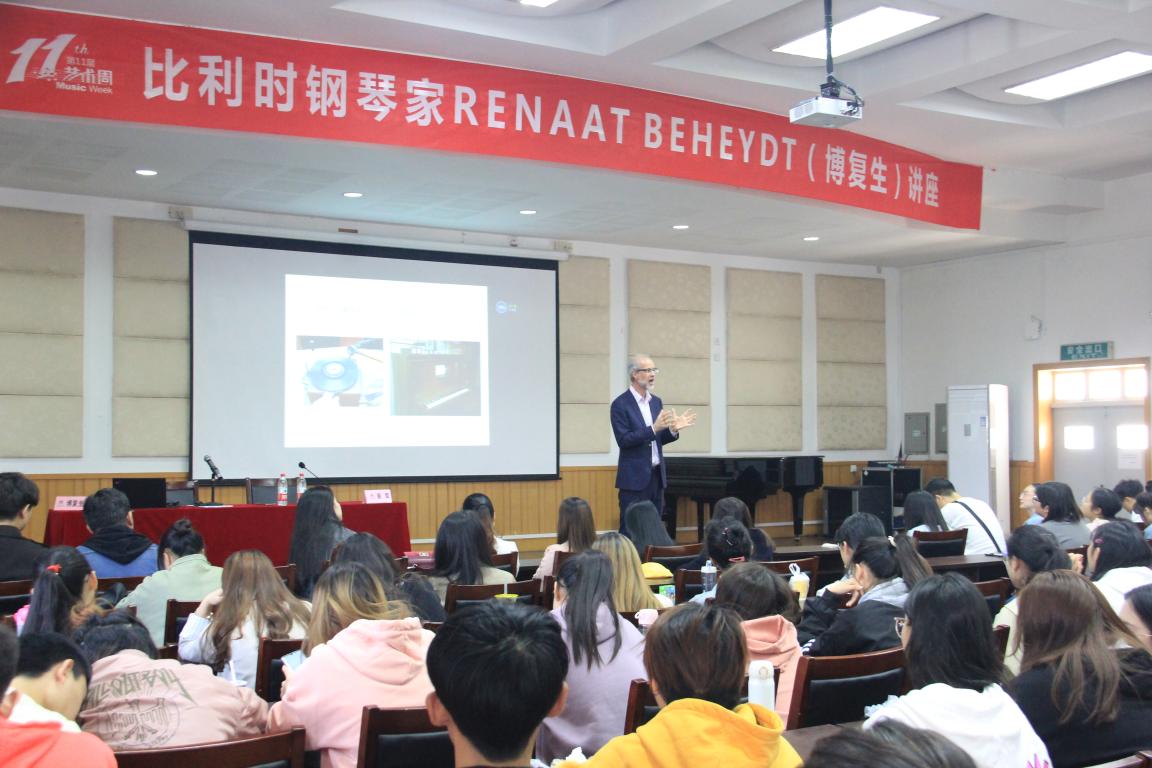 第二周的艺术周活动正式拉开帷幕。第一场活动就是分量极重的学术讲座,主讲老师是比利时钢琴家BENAAT BEHEYDT(博复生),此次讲座的主题是:听录音的重要性与危险性。