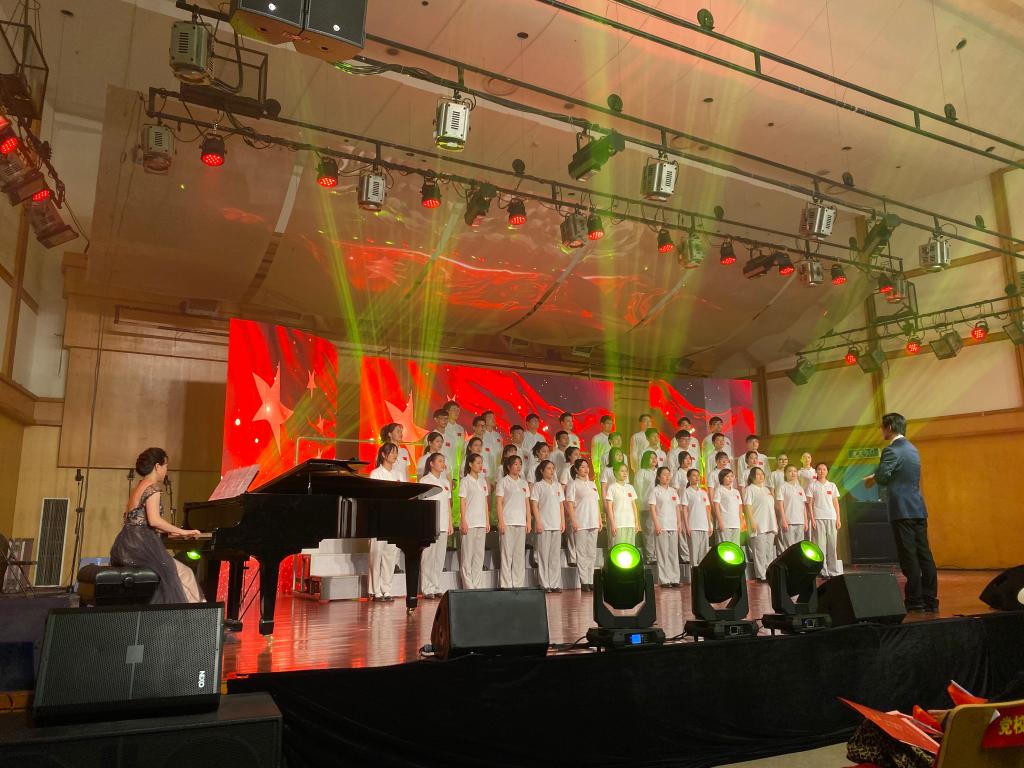 “鸿音传承”党员先锋服务团在叶文辉老师的带领下压轴出场,现场演绎原创歌剧《五星红旗》选段《国旗颂》,最后在优美的《我和我的祖国》的歌声中闭幕,赢来观众赞声不断,雷鸣般的掌声不绝于耳。