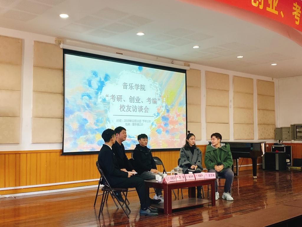 “创业、考编”校友访谈会。参加本次访谈会的校友有刘敬芳学长、周超学长、金冰冰学姐、胡馨予学姐和王艺博学长。