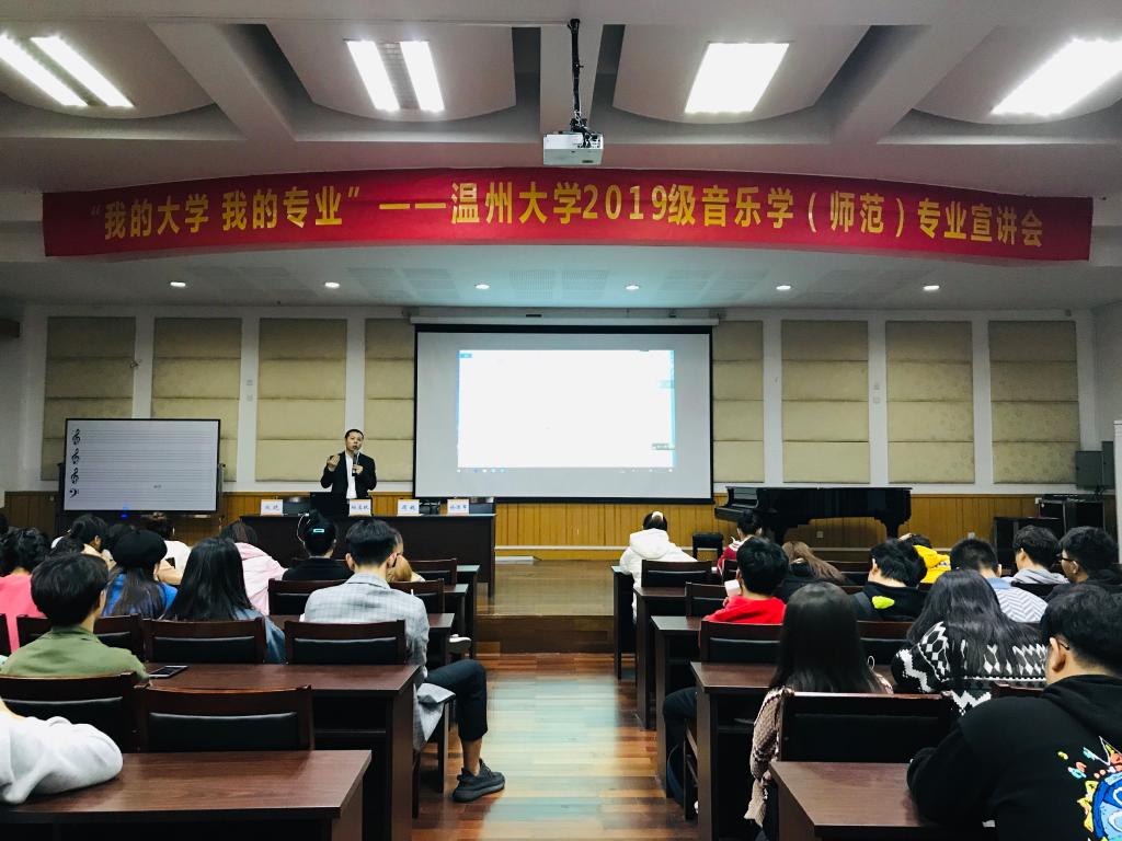 19级音乐学(师范)专业宣讲会在温州大学音乐楼201学术报告厅顺利召开,专业负责人柏互玖教授、教务科成晓老师、徐国军老师、优秀学生代表周妮同学出席了会议,全体19级学生认真聆听了宣讲会内容。