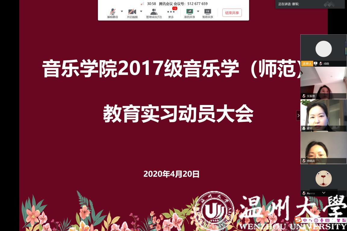 召开了2017级音乐学(师范)教育实习动员大会视频会议,17级音乐学(师范)本科全体学生参加了会议,国产成人电影