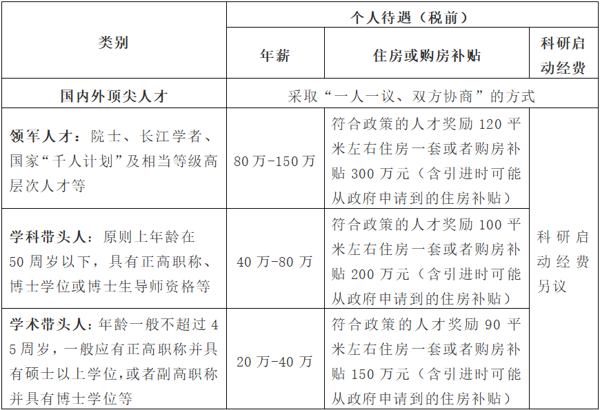 注:具体详细的人才引进政策请参照温州大学文件《温州大学人才引进与聘任实施办法》及其部分条款修订及补充意见(//rsc.gccrdy.net/rczp/rczc.htm)