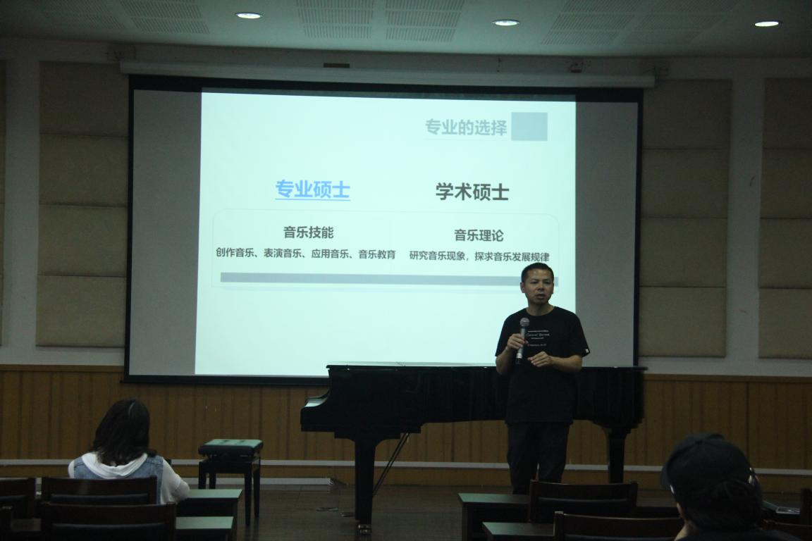 其次,便是考研难不难这一问题,成功的道路上是没有容易一说的。这就又回到我们一开始的选择,既然选择了考研,那我们就要考虑到专业的选择、学校的选择以及导师的选择。在专业的选择上有专业硕士和学术硕士,专业硕士指的是音乐技能方面,学术硕士则是音乐理论方面,专业技能没有特别突出的同学可以选择走学术理论这条道路。在学校的选择上,柏老师提到想做和能不能做是两码事,我们要依据自己的专业能力情况做出选择,而不是光凭喜好。在导师的选择上,要选择真真正正能帮到我们的导师,所谓严师出高徒,不要惧怕严厉的老师,毕竟到最后,我们的选择决定的是我们自己的人生。