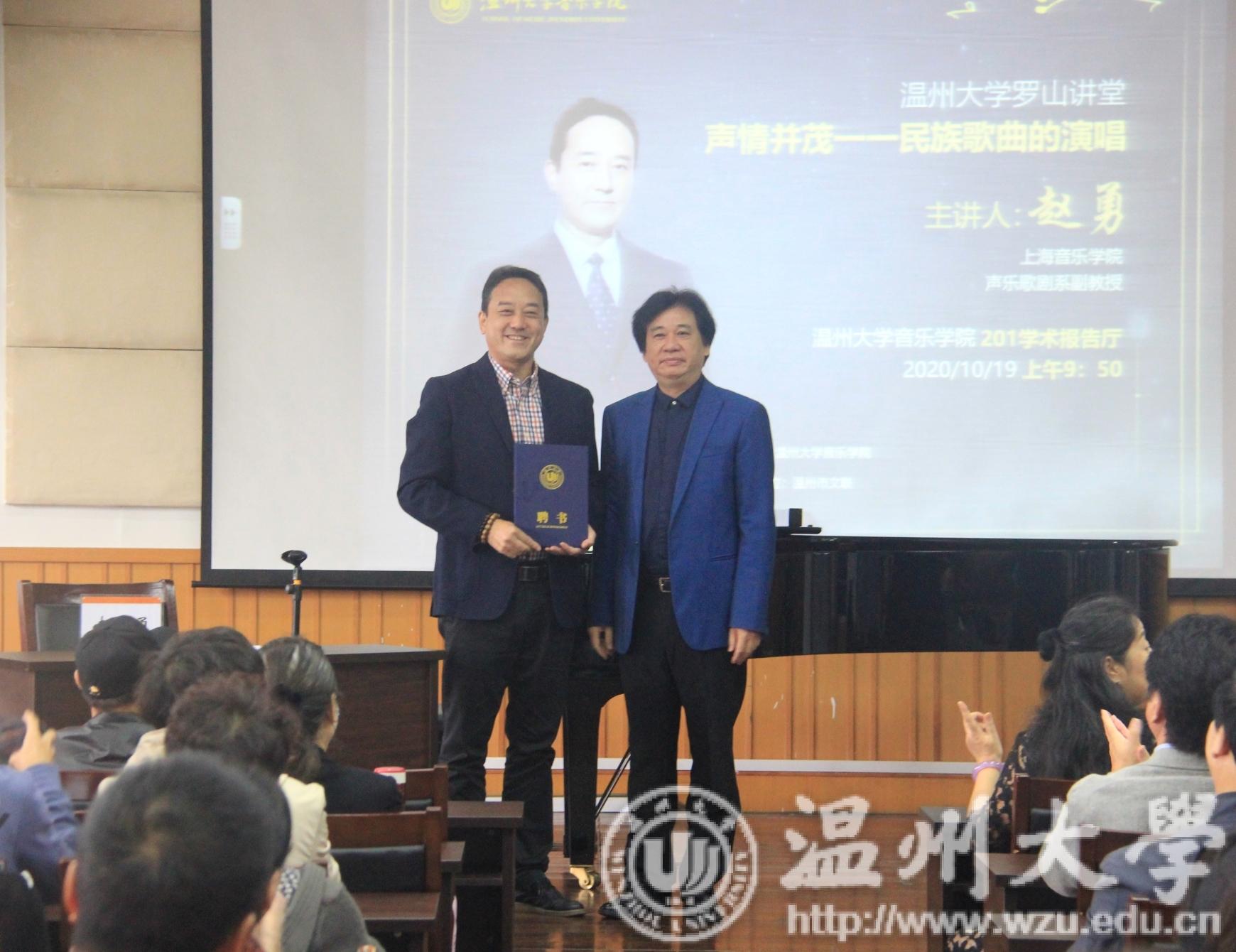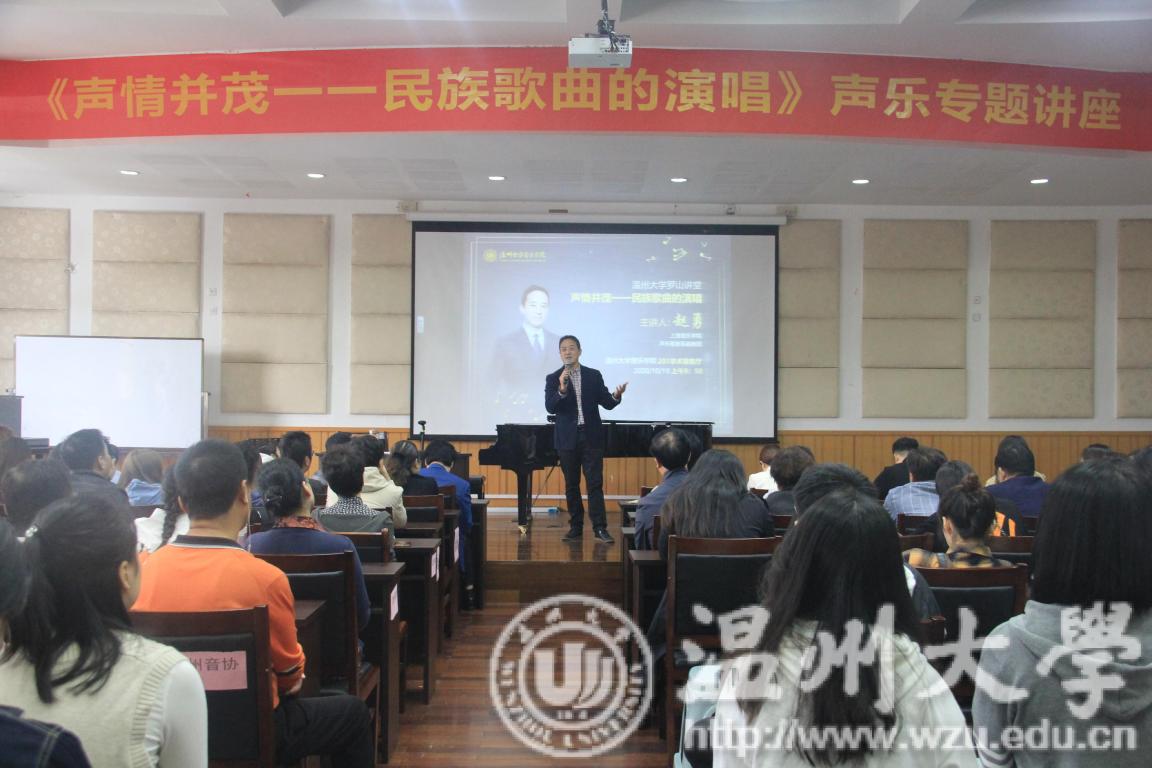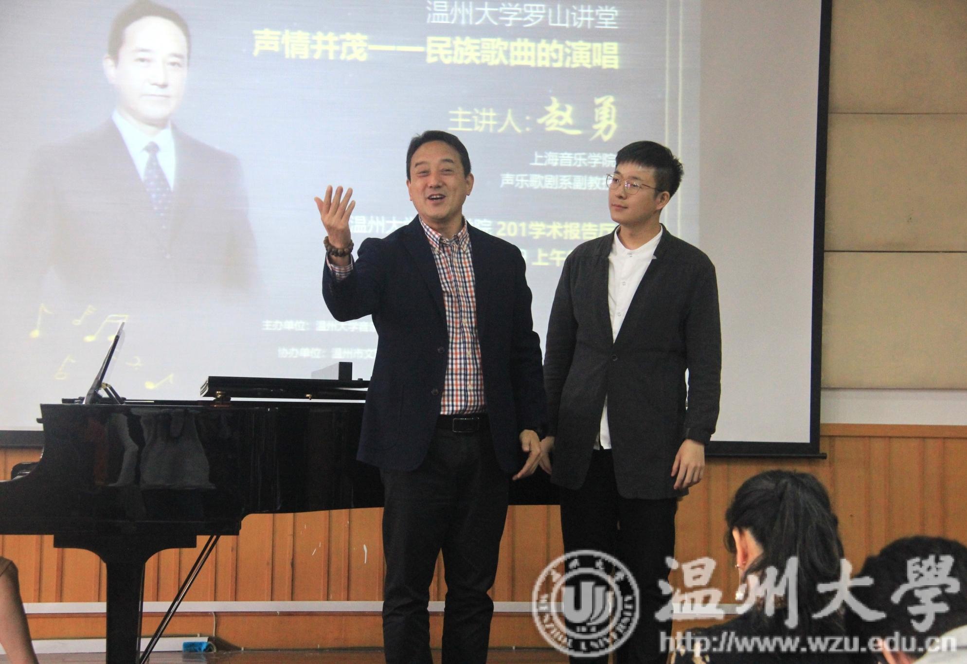 声乐歌剧系副教授、男高音歌唱家赵勇主讲的《声情并茂—民族歌曲的演唱》声乐专题讲座。此次讲座由温州大学主办,为罗山讲堂系列讲座,国产成人电影