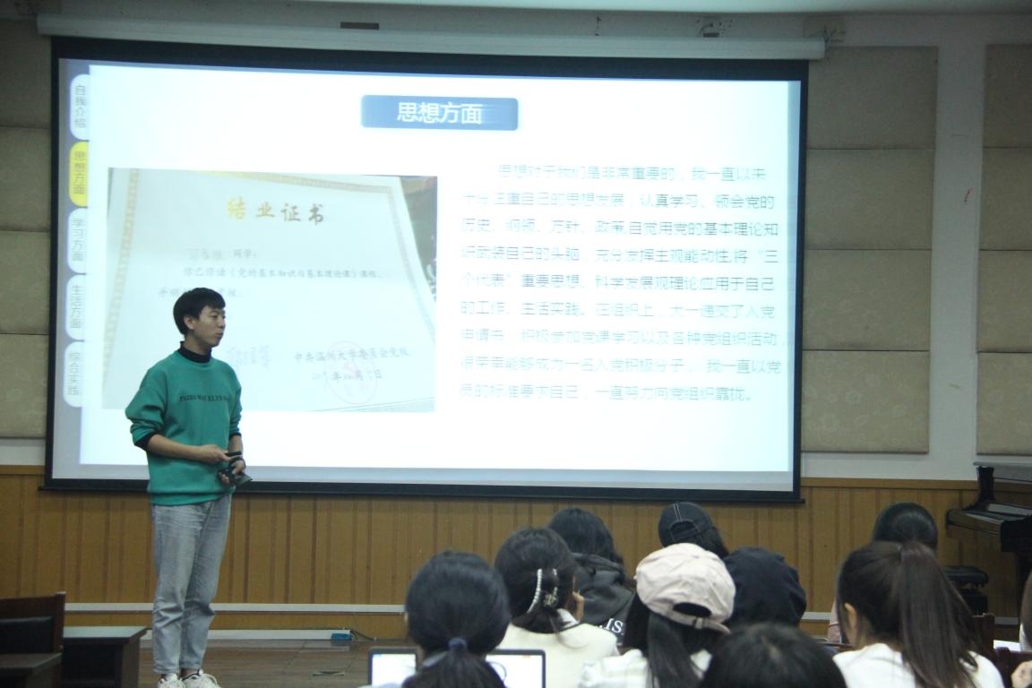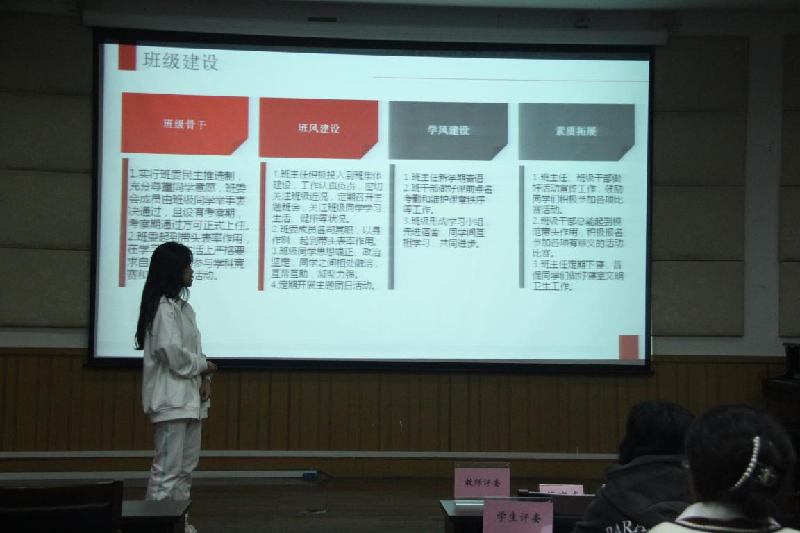 在主持人介绍了本次评比大会的答辩流程和相关注意事项后,各答辩对象依次进行展示。答辩过程中,学习标兵候选人用自己的点点滴滴诠释了其为实现每一个flag的奋进历程;优良学风班答辩代表则是立足班级整体,从班级介绍、学风建设目标、学风建设成效及展望等方便,通过展示每位班级成员的点滴风采,诠释了一个优秀班级所应有的特质。