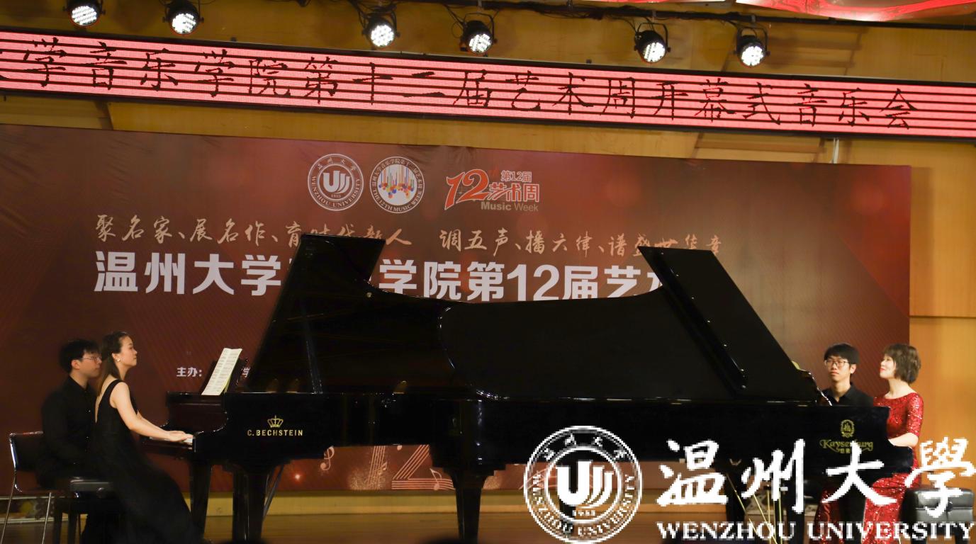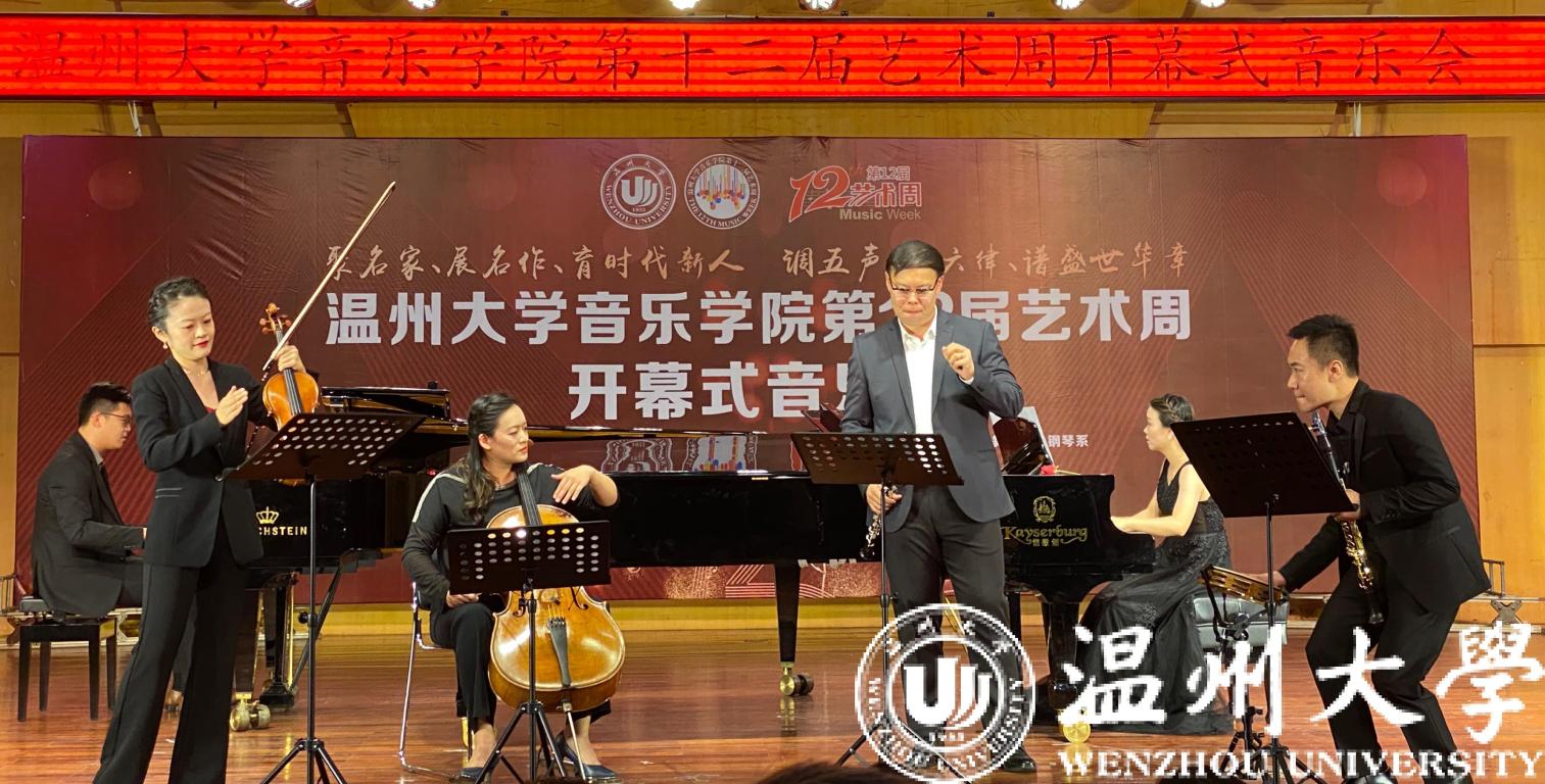天瑞音乐厅隆重举行。温州市人大副主任张洪国,温州市政协副主席王丽峰,温州大学党委副书记吴金法、庄兴忠,温州大学副校长钱强等领导出席开幕式。